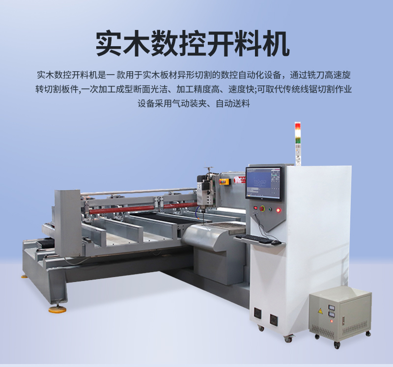1.實(shí)木數(shù)控開料機(jī)是一款用于實(shí)木板材異形切割的數(shù)控自動(dòng)化設(shè)備,通過(guò)銑刀高速旋轉(zhuǎn)切割板件,一次加工成型。