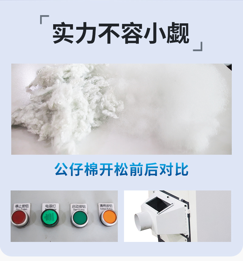 1.主要用于不同棉質(zhì)材料如(對不孕籽棉、落地棉、棉紗麻類、布頭、化纖)等進行蓬松的工序。