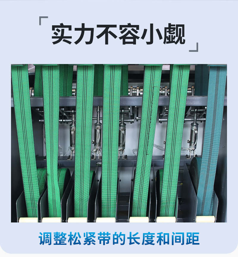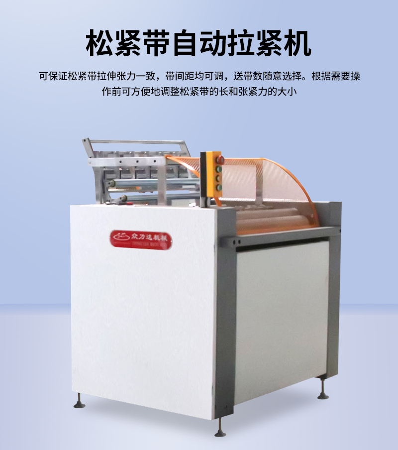 可保證松緊帶拉伸張力一致,帶間距均可調,送帶數(shù)隨意選擇。根據(jù)需要操作前可方便地調整松緊帶的長度和張緊力的大小。